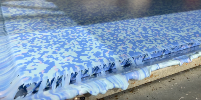 Colour combinations are melted down into sheet material. (Our partners use a renewable energy supply for this energy-intensive bit.)
