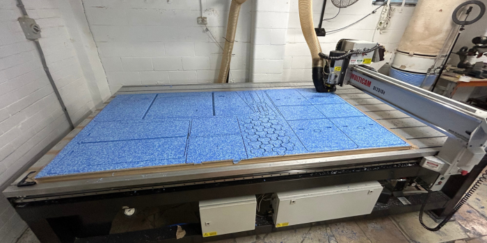 Furniture elements are cut out of the sheets. The layout intentionally organised to keep offcuts to a minimum.