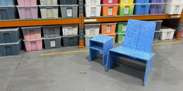 Post-consumer and post-industrial waste is washed and shredded before being converted into colourful, UV-stabilised pellets.